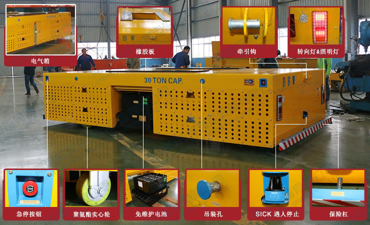 BWP:無軌電動平車是一種以蓄電池作為電源,電機減速機作為驅動系統,實心包膠車輪直接在地面行走的轉運車,其運行不受限制,進口的車輪保證地面不受損壞,360°原地轉彎適應更狹小的空間運行,360度無死角防護、遇人自動停止等功能,保證了運行過程中的安全問題。觸摸屏、搖桿操作等設計使操作更加人性化。全自動化無人操作的功能讓它更加智能,適應爬坡、防爆、粉塵等各種場合。