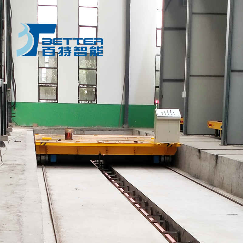 BHX系列電動平車是安全滑觸線供電式電動平車。其是在軌道側面開設地溝,地溝內安 裝安全滑觸線,地溝上鋪設有單面用鉸鏈固定于地上的蓋板。電動平車運行時通過安裝在平車上的地溝 翻板裝置,將蓋板掀起,翻板裝置內有同安全滑觸線集電器聯接的電纜。電動平車通過后蓋板自動放回 地面。能保證無軌車輛順利通過。地溝翻板滑觸線型電動平車不受運行距離的束縛。 |
