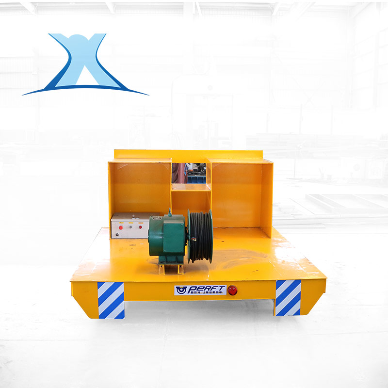 BJT:以380V交流電源做為平車電源的軌道平車,為避免電纜線損傷,增加電纜卷筒做為收放線裝置,由于電纜線的束縛,適用于較短距離的軌道運輸系統,但因其結構簡單,價格低廉,因此也是車間常用的軌道運輸設備。