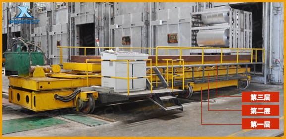 適用于淬火爐、真空爐等工作環境。是專門為制作真空設備的生產商專業研發的一款新型軌道運輸車產品,可實現單層、雙層及三層的不同運行的功能。此類軌道平車載重噸位通常不大,主要的作用是將需要加工的工件送入爐內,留在爐內待加工完成后拉出爐體,此車共有三層部分組成,一層車主要是在地面軌道運行,運行距離不受束縛,將二、三層車送至爐體旁邊,一層車的供電方式多樣化,可根據現場的條件及環境設定,到達爐體后二層車需要向前推送至爐體內,和爐體內的軌道對接,二層車的驅動方式一般采取較為準確的方式向前推進,這一段行進的距離通常在1