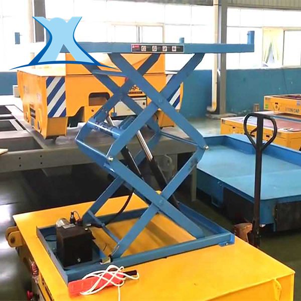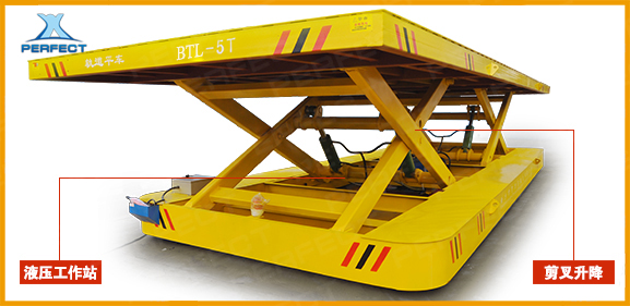 液壓升降軌道平車是一種多功能起重裝卸機械設備,通常可以在設定的高度范圍內 升降,滿足作業時高度的不同要求,且平臺可以是整個臺面進行升降,也可以是另設工作平臺。升降時也可以實現固定高度自動停止,電動平車常用的升降平臺主要有以下兩種: 一種是垂直升降平臺,是由液壓系統提供動力進行升降。此系列升降軌道車通常配套一整套液壓系統,用來放置承載物件的平臺,就構成一套升降系統。根據承載噸位以及升降高度不同,配置液壓缸的數量和規格也有所區別。 一種是剪叉式升降平臺,也由液壓系統提供動力。此系列承重結構是剪叉式,常用于升降高度比較