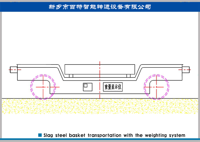 我公司一臺稱重式軌道車是提供給巴基斯坦的客戶,用戶用它來運輸鋼水包,為計算產量,特要求軌道車加裝電子秤,且由于鋼水包的溫度較高,因此臺面及電子秤均需采用高溫防護,且保證平車在啟動、停止及運行過程中都保持穩定運行,因此特采用緩慢啟動、勻速行駛、緩慢停止的運行方式,以避免鋼水濺出而造成意外。
